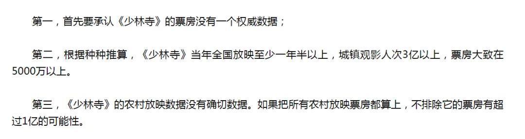 《少林寺》当年的城镇观影人次应在3亿以上,由此可计得票房大致在5000万以上。